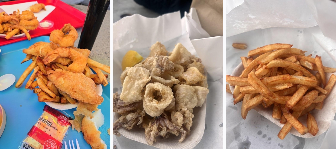 The classic fish 'n' chips stand out, especially the halibut and cod. Don't skip the clam chowder; it's a local specialty that pairs perfectly with the meal.