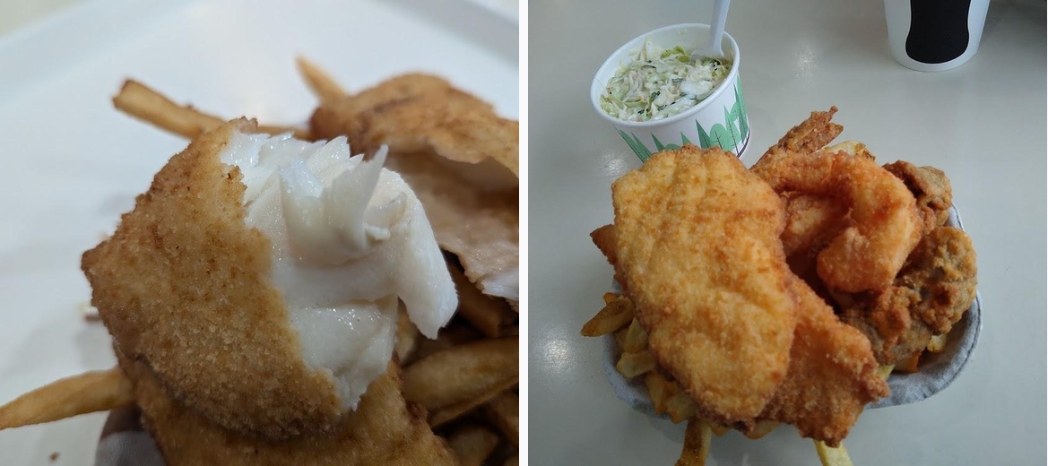 We are in the area on vacation and fell upon this amazing seafood spot. We ordered the cod and prawns with fries, and split it between two people to go. It was more than enough food, very fresh tasting, lightly breaded, and delicious. The two gentlemen that helped us today were extremely friendly! I would HIGHLY recommend this restaurant!